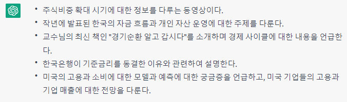 긴 영상일수록 챗GPT이 하는 요약의 힘은 더 클 것이다.